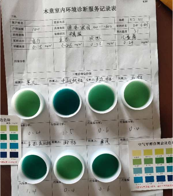 治理7天后,業主進行自助檢測家具內和CMA復檢驗收,各項污染物均在國家標準以下。