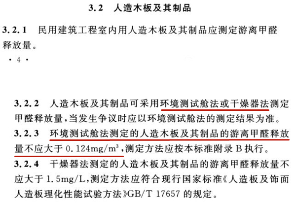 對室內裝飾裝修設計提出了污染控制預評估要求及材料選用具體要求,為室內污染治理企業開展事前治理提供了新的方向。以人造板為例,規定其甲醛釋放量不應大于0.124㎎/m3,材料甲醛釋放量檢測采用人造板甲醛釋放量測定的環境測試艙法和干燥器法。