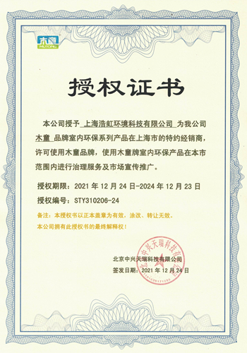 木童除甲醛上海經(jīng)銷(xiāo)商授權(quán)證書(shū)